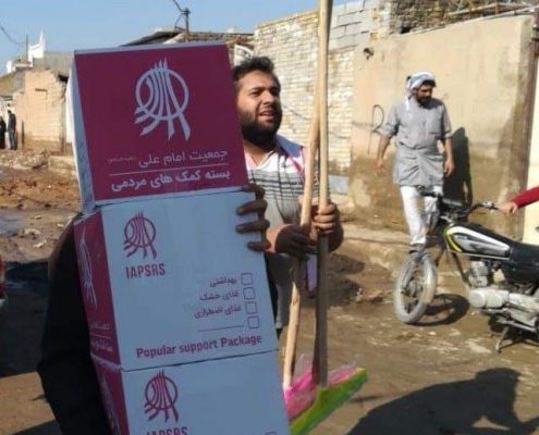 Distributing supplies kit by Emam Ali Volunteers in Koot Abdollah area( Karoon city) which is located in suburbs of Ahvaz