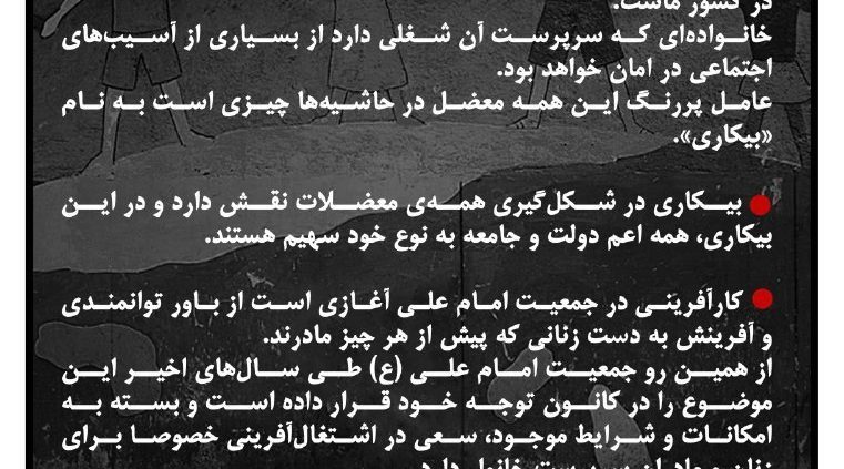 «بیکاری»، عامل پررنگ بسیاری از معضلات