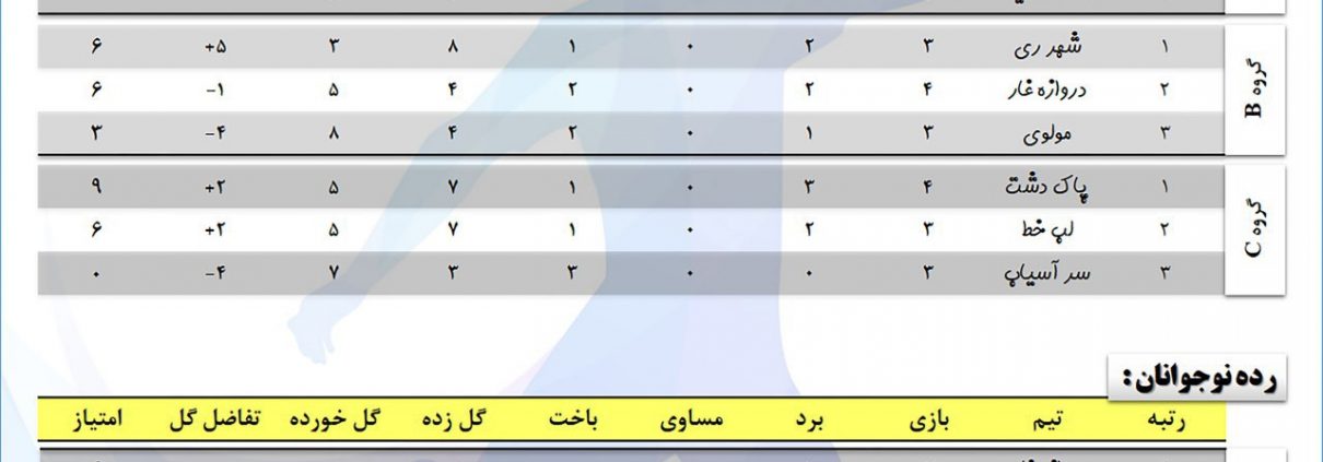 نتایج هفته ی پنجم از دور مقدماتی مسابقات لیگ فوتبال پرشین منطقه تهران